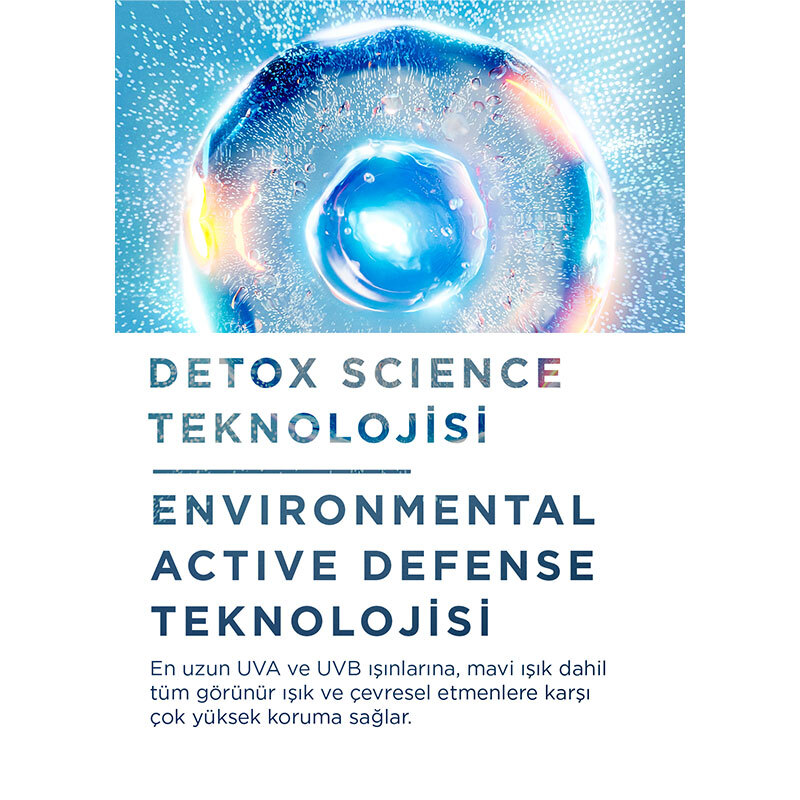 Detox Science Teknolojisi sayesinde çevresel etmenlere karşı arındırıcı antioksidan etki sağlanmasına yardımcı olur.