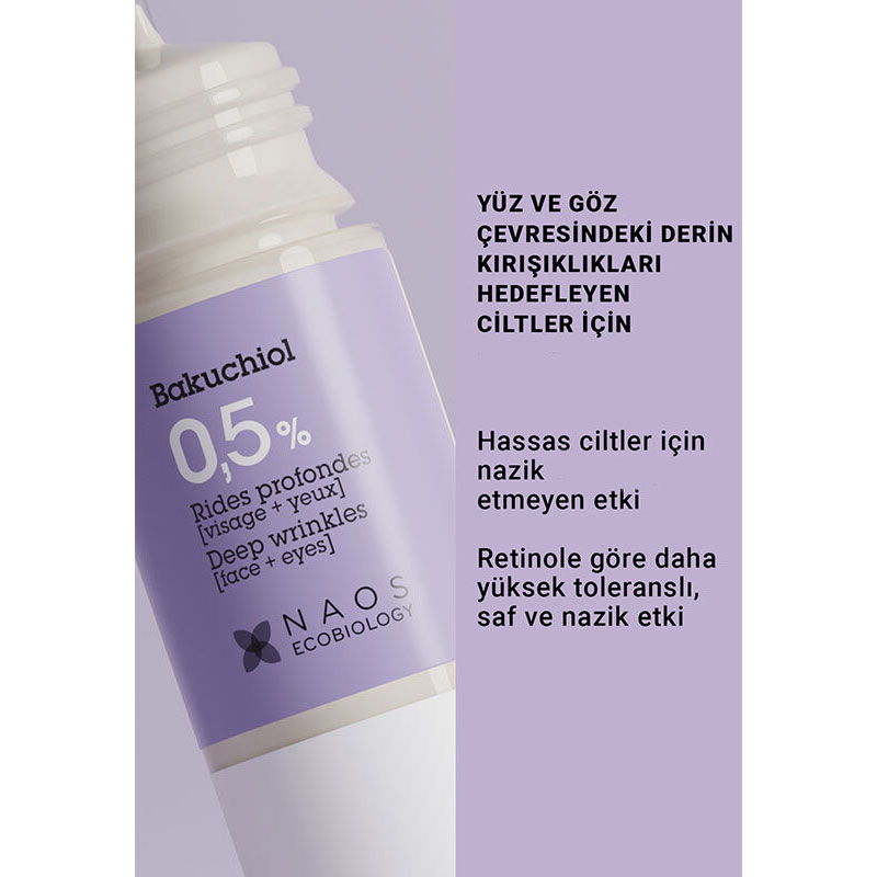 Doğal kaynaklı bakuchiol içeren bu güçlü formül, cildin yenilenme sürecini destekleyerek ince çizgi, kırışıklık ve cilt tonu eşitsizliklerinin görünümünü azaltmaya yardımcı olur. Retinol benzeri etki sunarken, hassas ciltler tarafından da iyi tolere edilir. Düzenli kullanımda cilt daha pürüzsüz, dolgun ve parlak bir görünüme kavuşur.