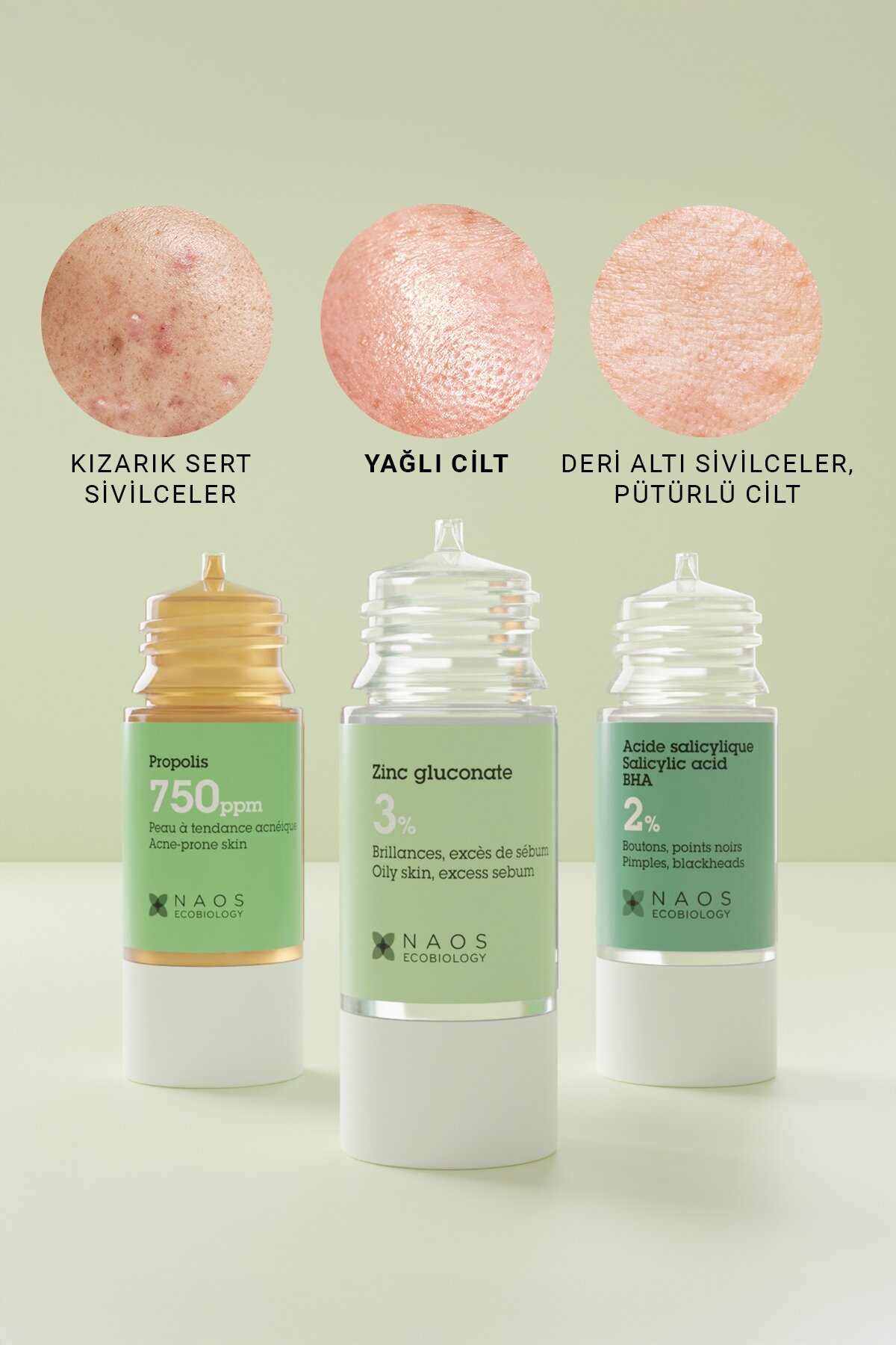 aqua/su/eau, propanediol, alkol, çinko glukonat, sodyum sitrat, üre, kapriloil glisin, sodyum laktat, ksantan sakizi, leuconostoc/turp kökü fermenti süzüntüsü, sodyum hidroksit, salix nigra (söğüt) kabuğu ekstrakti, potasyum sorbat, sitrik asit, laminaria digitata ekstrakti, karnosin, disodyum adenozin trifosfat