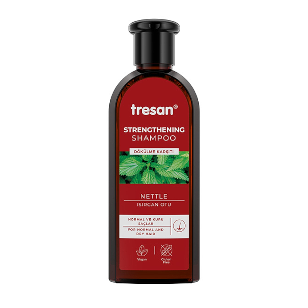 Yağlı saçlar için özel olarak formüle edilmiştir. Özgün içeriğindeki biberiye yağı, saç derisine ferahlık, saçlara canlılık kazandırır. Saçı besler ve güçlendirir. Günlük kullanım için uygundur.Tresan Isırgan Otu Güçlendirici Bakım Şampuanı normal ve kuru saçlar için ısırgan otu ekstresi ile özel olarak formüle edilmiştir. Saç foliküllerinin beslenmesine ve saçın canlılık kazanmasına yardımcı olur. Hasar görmüş saçlarda da kullanılır. Saçı hacimlendirir ve güçlendirir.