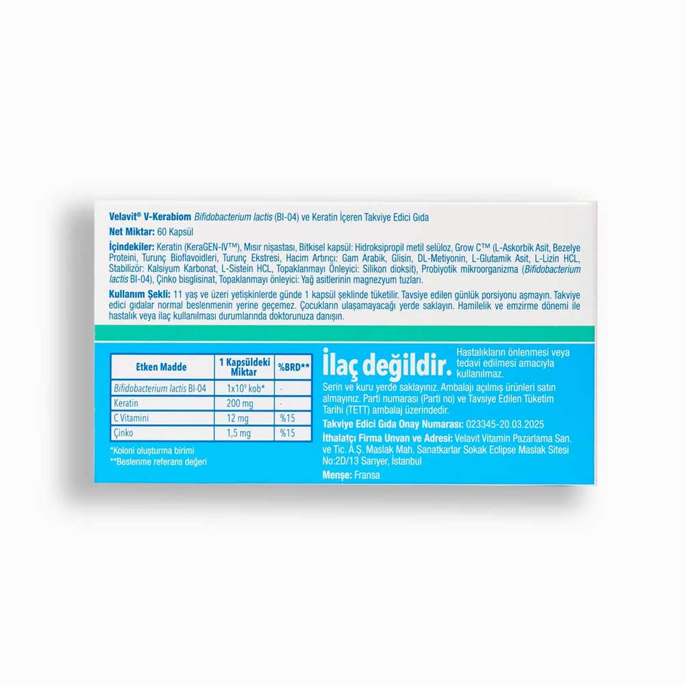 Gelince Haber VerPatentli HOWARU Radiance (Bl-04) Bifidobacterium lactis probiotik suşunu içerir Keragen-IV; Saf, biyolojik aktif keratindir Grow C Askorbik asit + bioflavonoid sinerjisi sunan tam gıda matriksli bir C vitaminidir C vitamini cildin normal fonksiyonu için gerekli olan normal kollajen oluşumuna katkıda bulunur.